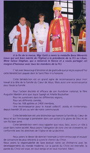 S.S Le Pape Jean Paul II à remis Une bénédiction bene Merentis(ceux qui on bien mérité de l'Eglise) à la présidente de la FCJ au Liban en 2004